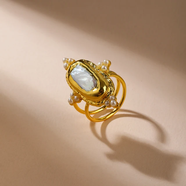Creative Design Natural Freshwater Baroque Pearl Ring Jewelry for Party