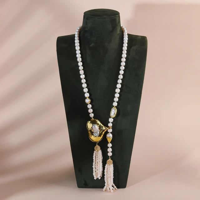 Vintage Luxury Natural Pearl and Tassel Pendant Beaded Necklace Jewelry for Party