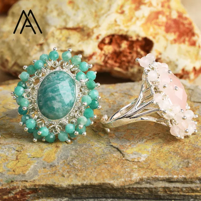 Romantic Crystal Aquamarine Amethyst White Ring Nature Healing Spirit Stone Jewelry for Weddings Festivals Holiday Parties
