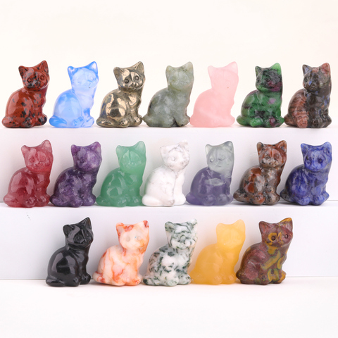 ミニクリスタル猫彫刻1.2インチ癒しの石手彫り動物かわいい室内装飾