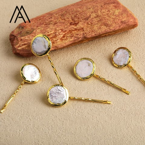 レディースガールズナチュラルパールヘアクリップ18Kゴールドプレートブラスメタルヘアスタイリングアクセサリー