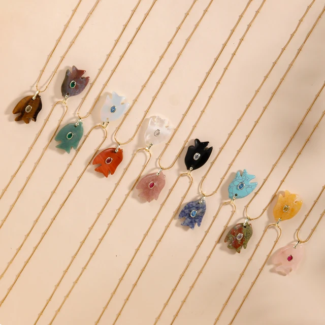 สร้อยคอจี้อัญมณีรูปปลาควอตซ์ธรรมชาติรูปปลาสตรอเบอรี่แบบ DIY สำหรับงานปาร์ตี้